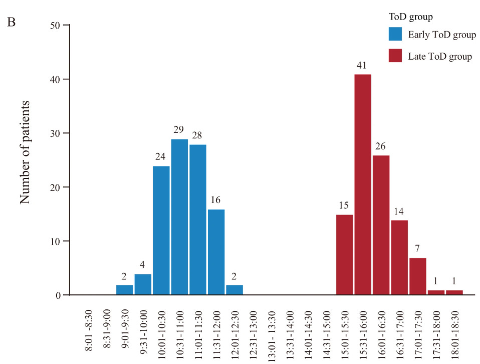 If early and late correspond to different clinic blocks, potentially involving different staff, workflows, patient flow, or scheduling constraints, then the exposure may in part reflect clinic operations rather than circadian immunobiology.